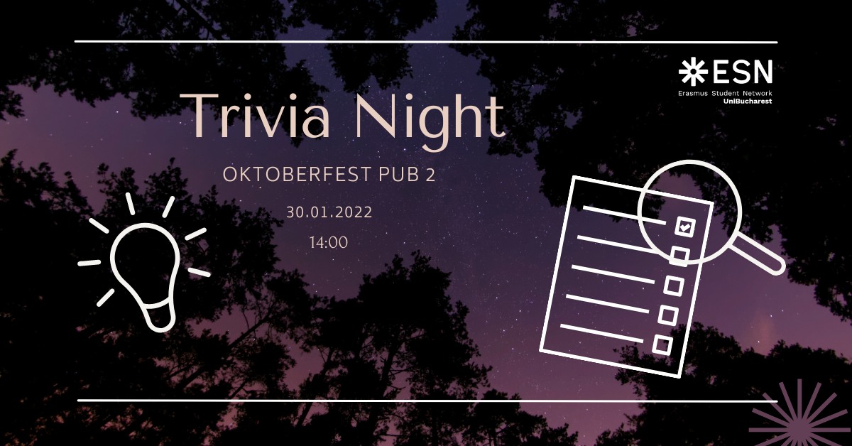 ESN UniBucharest Team invites you to Trivia Night, an event where you can have fun and test your general knowledge, maybe you'll find new interesting facts about our country and city and also bring new information to us.